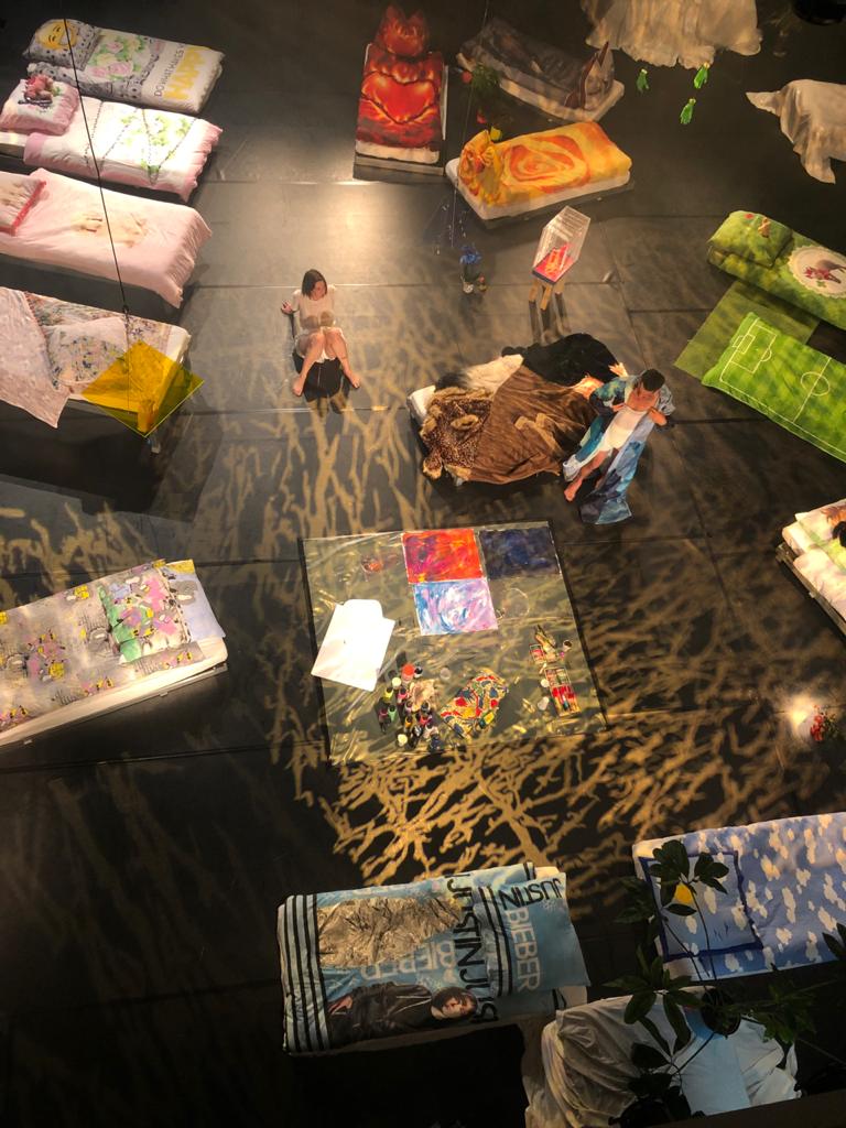 As the light is slowly dimming, the stories are accompanied by vocals from NYX electronic drone choir. A poem is read for bodies to time travel. Senses are taken to the edge of land through a guided visualisation. A karaoke song is sung. Dances are danced between the beds without fear of judgement. This is no cure. There is resilience. This is a radical space for and by sickos.